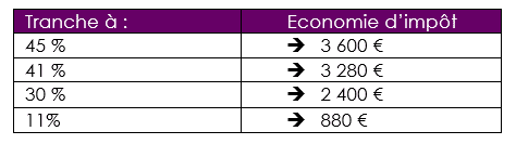 Hypothèse d’une personne célibataire qui verse 8 000 € sur son PER. Son économie d’impôt sera de :