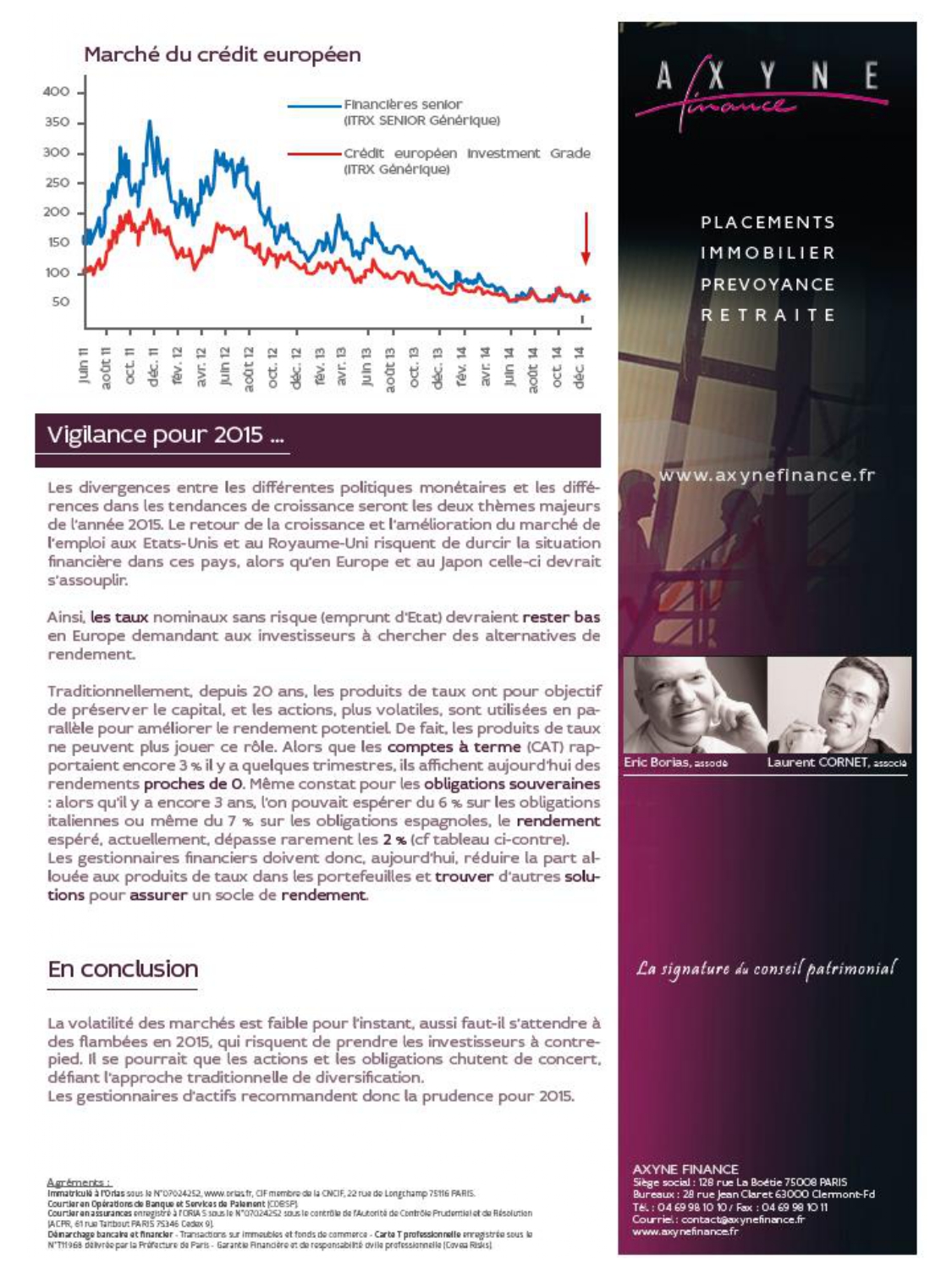 5. MASSIF CENTRAL ENTREPRENDRE N°55 / Février 2015 / QUE NOUS RESERVENT LES MARCHES FINANCIERS POUR 2015 ?