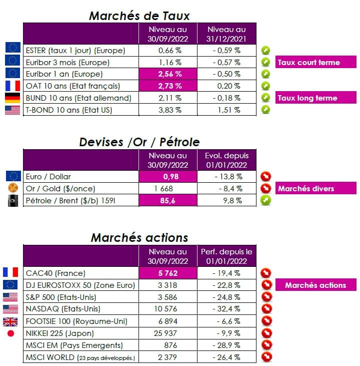 C’est pourquoi, dans ce contexte, nous ne conseillons pas de se précipiter aujourd’hui sur les fonds obligataires. Mais de les surveiller attentivement car le moment devrait être plus propice en fin d’année ou début 2023, surtout pour les obligations de la zone euro. Cette déconfiture s’explique bien sûr par la remontée des taux d’intérêt initiée par les banques centrales à la suite de l’envolée du taux d’inflation. Si ce mouvement est bien entamé aux Etats-Unis, il n’en est qu’à ses débuts dans la zone euro. « La BCE va certainement maintenir son cycle agressif de relèvement des taux jusqu’à la fin de 2022, mais elle changera alors de cap en constatant que l’économie s’en ressent trop durement », anticipe BlackRock Investment Institute. Les marchés financiers ont généralement en tête, que le point bas des indices boursiers est atteint entre trois et sept mois après l’entrée en récession. C’est ce qu’il ressort des statistiques depuis la Seconde Guerre mondiale. Quant au Cac40, il pourrait aller tester les 5.100 points, mais la baisse ne devrait pas s’effectuer en ligne droite. Un rebond technique est probable à court terme.